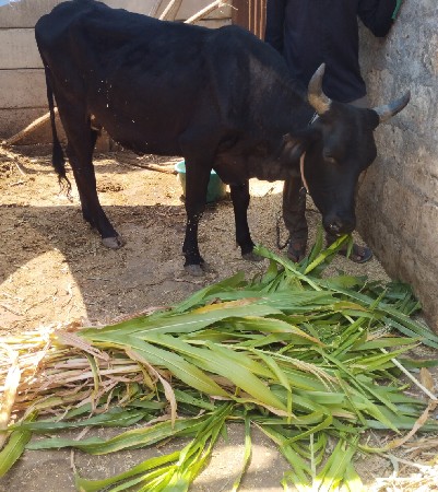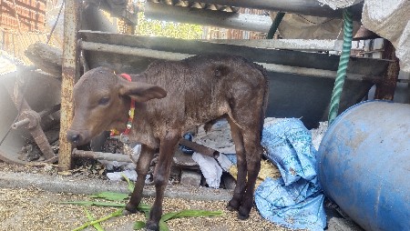 દોઢ મહિનાની વિહાણેલી છે પાંચ પાંચ લીટર દૂધ આવે છે પેલું વેતર છે દુવામાં સાવ સોજી છે