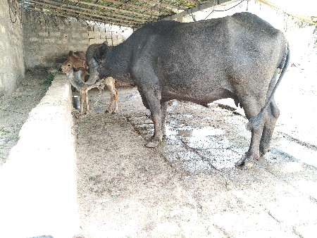 ૨ વેતર જાફરી ભેંસ ૨ મહિના ની વ્યાનેલ છે ૫.૫ દૂધ સે