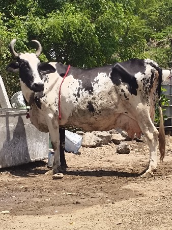 1.5 મહિના ની વિયાણ છે. નીચે વાછડો છે. 6.5+7લીટર દૂધ છે. સાવ સોજી છે.