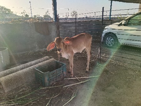 દૂધ સવાર સાંજ ત્રણ ત્રણ લીટર નીચે વાછડી ચાર મહિનાની વિહાઈ ગયેલ બીજદાન કરેલ એનો દોઢ મહિનો થયો